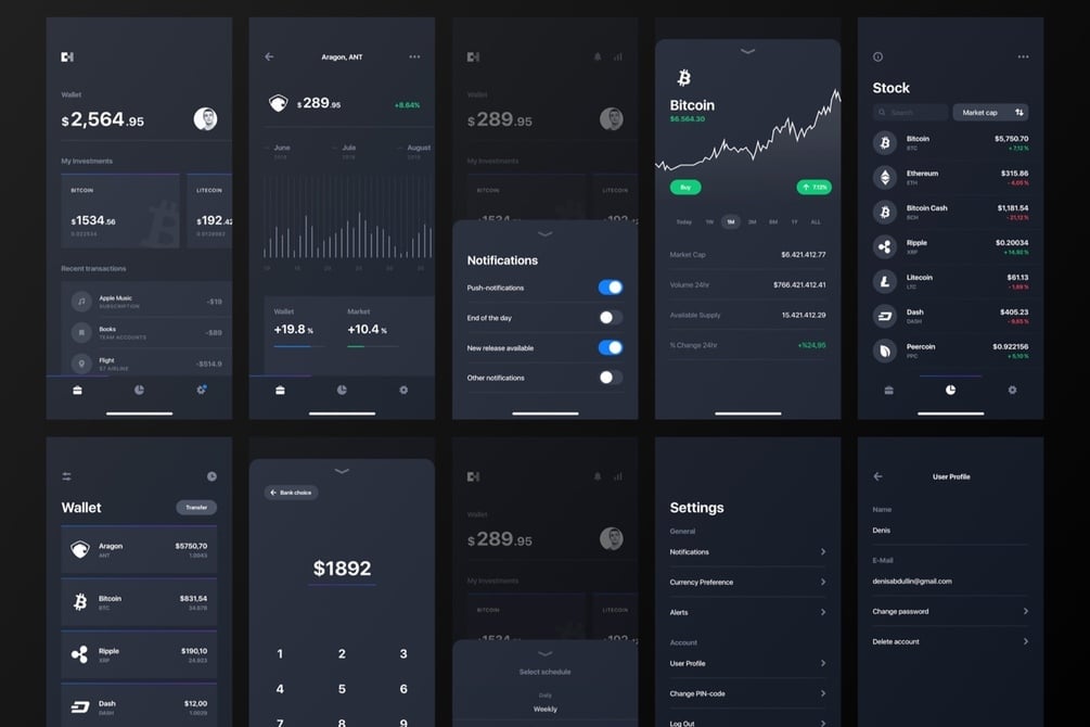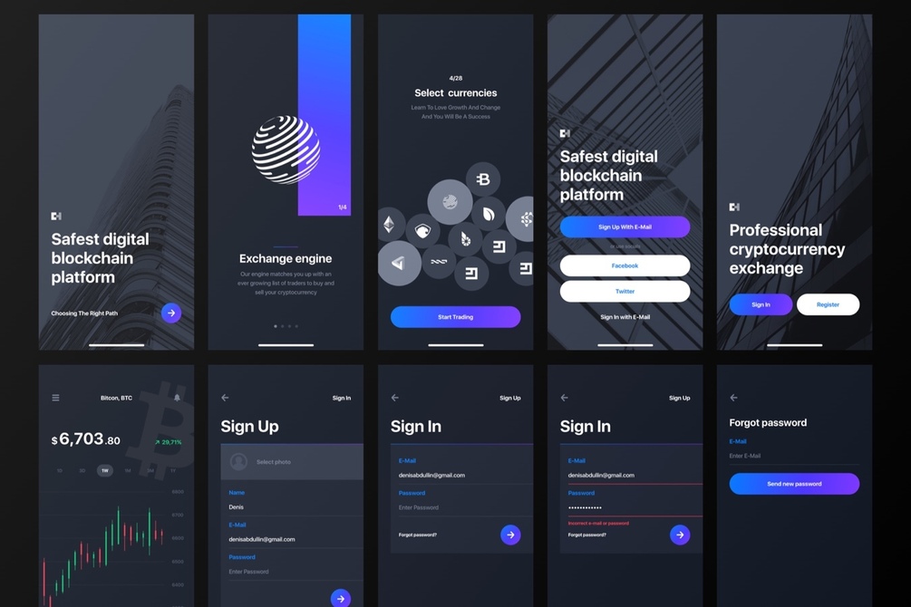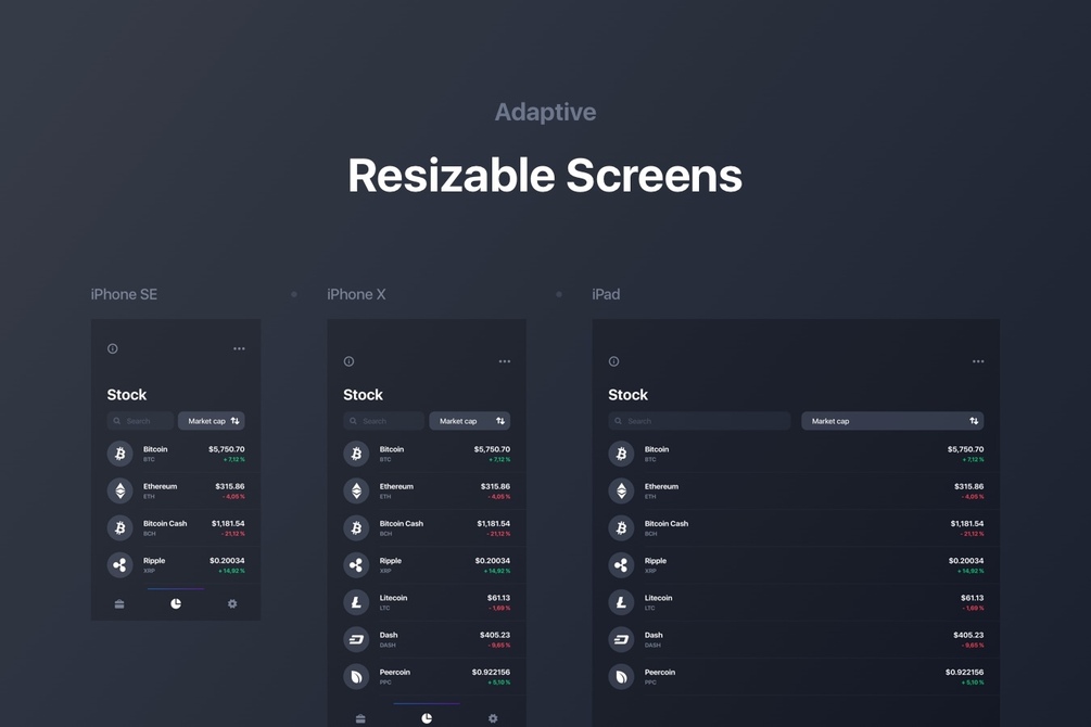 You can resize every screen to get view from iPhone 5s to X with a single click. The set also includes interface & cryptocurrency icons. Enjoy!