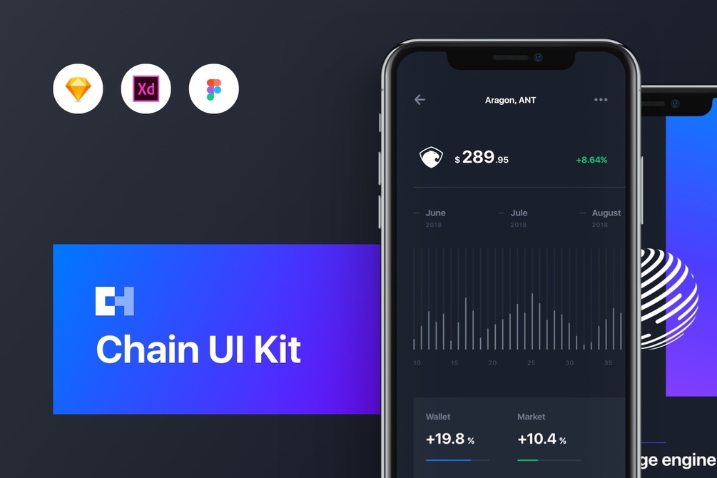Chain is Premium UI Kit that contains 35 mobile app screens for your cryptocurrency tracker app. Each screen is fully customizable, exceptionally easy to use and carefully layered and grouped in Sketch, Adobe Xd & Figma. It's all you need for quick prototype, design and develops.